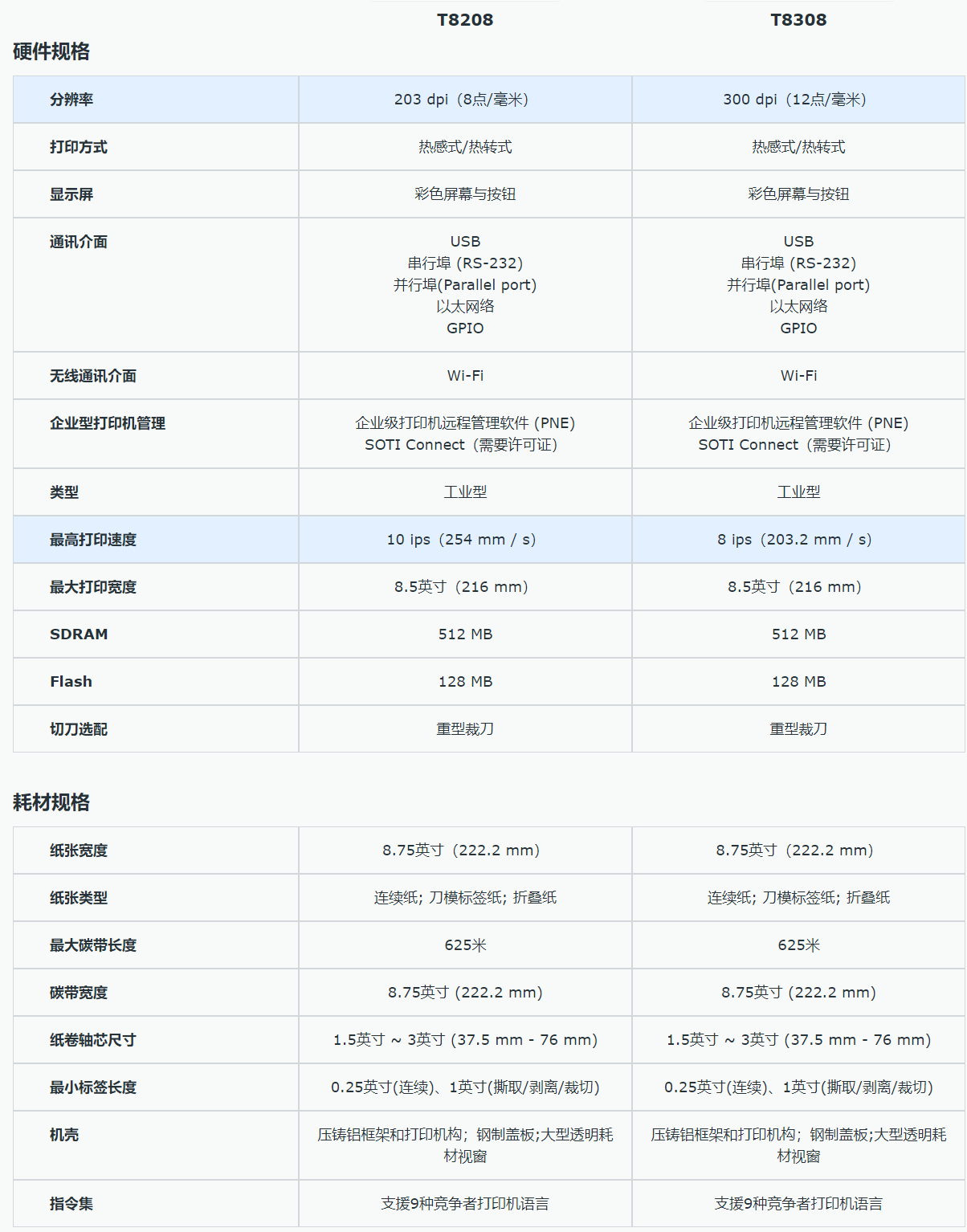 • TSC普印力 T8208,T8308